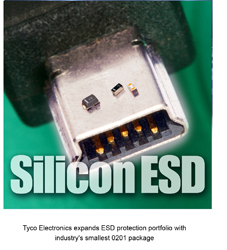 泰科电子今日宣布其防静电(ESD)保护器件产品线上再添三款新品。其中0201尺寸的硅基ESD(SESD)器件比上一代0402型的器件大约缩小了70%,能够为手机、MP3播放器、PDA和数码相机等便携式电子产品提供?;ず吞岣咂淇煽啃?。