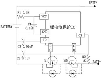单节锂电池?;C的应用电路很简单,只需外接2个电阻、2个电容和2个MOSFET,其典型应用电路如图1所示。