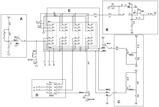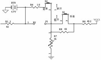 根据锂电池?;C的工作原理设计的测试电路如图2所示,图3详细说明了图2中??锽的电路。??锳在测试过流保护时为CS引脚提供电压,模拟图1中的CS引脚所探测到的电压。调整??橹械目杀涞缥黄骺晌狢S引脚提供可变电源,控制其中的跳变开关可为CS提供突变电压。模块B为电源,模拟为IC提供工作电压。调整电路中的可变电位器R7可为整个电路提供一个可变电压,在测试过充电保护电压和过放电?;さ缪故笔褂谩?刂颇?橹械目豐1的闭合为测试电路提供一个跳变电源,在测试IC的过充、过放和过流延迟时使用。