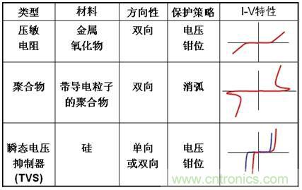 安森美半导体来自美国的ESD?;ぷ襌obert Ashton博士说,一般而言,ESD?;ぴ姆掷嗫梢酝ü浔;げ呗杂敕较蛐岳唇校饕ㄑ姑舻缱?、聚合物和瞬态电压抑 制器(TVS)等,如表1所示。在这几种?;ぴ?,压敏电阻在低电压时,呈现出高电阻,其中的每个小型二极管两端的电压都相当低,同时电流也相当小;而在较高电压时,其中的独立二极管开始导通,同时压敏电阻的电阻会下降。从表1中我们也可以看出压敏电阻为双向?;ぴ?。而对于带导电粒子的聚合物而言,在正常电压下,这些材料拥有相当高的电阻,但当发生ESD冲击时,导电粒子间的小间隙会成为突波音隙阵列,从而带来低电阻路径。