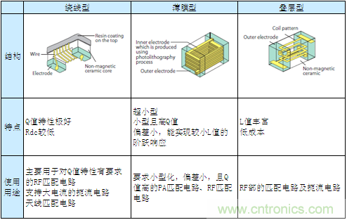 叠层型构造虽有3种结构且Q值也较低,但由于其L值偏差及规格、价格等整体的平衡性较好,因此被广泛使用于RF的匹配电路、共振电路及扼流电路中?!?br /> 上述3种构造各具特色,根据其特色其使用方法也各不相同。下讲中,我们将介绍电感器的实际贴装。