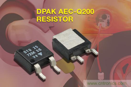 DTO25是无感器件,阻值从0.016Ω到700kΩ,其外形尺寸为8.2mm x 7.3mm的面积和2.8mm的厚度,在DPAK封装内能承受比竞争元器件多10倍的能量,即承受10-5秒脉冲的最高5kW功率和0.1秒脉冲的10J能量。