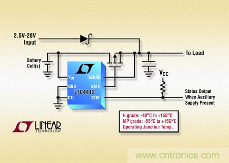 LTC4412 20mV 的正向电压至少比肖特基二极管低 10 倍。因此,由于在那些需要于不同电源之间实现自动切换或负载均分的系统中大幅降低了功率损耗并减少了自发热,该器件使效率提升了一个数量级。LTC4412 在大范围使用条件下保证满足性能规格要求,例如,在 2.5V 至 28V 工作电压范围内,工作结温范围达到 –55C 至 150C。