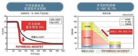图2. 普通Si-IGBT和ROHM的SiC-MOSFET的开关损耗比较