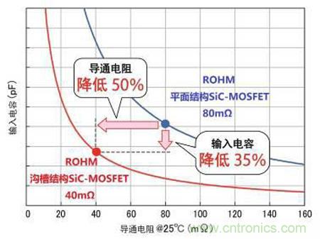 图5. 沟槽结构SiC-MOSFET的导通电阻、输入电容特性