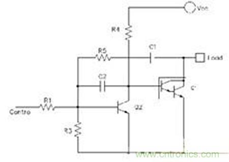 先来看看电路在没有C2的情况下是如何工作的:控制端由低电平拉升到高电平的过程中,集电极电流增长使得三极管从截止区—》放大区—》饱和区变化,从而使三极管从关断状态(截止)变为开通状态(饱和),注意,开通过程中,集电极电流增长全部靠Vcc提供;反过来,控制端从高电平变为低电平过程中,通过R3对基极电荷的泄放,加速控制三极管从饱和区—》放大区—》截止区变化,并最终变为关断状态。