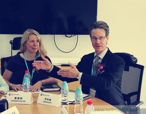 倍捷连接器总裁兼首席运营官罗树德和倍捷连接器亚洲和南美洲分销总经理费雅婷女士接受采访