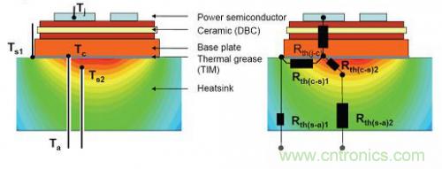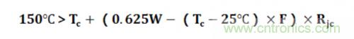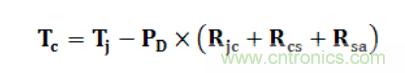 其中Tc为芯片的外壳温度,PD为芯片在该环境中的耗散功率,Tj表示芯片的结点温度,目前大多数芯片的结点温度为150℃,Rjc表示芯片内部至外壳的热阻,Rcs表示外壳至散热片的热阻,Rsa表示散热片到空气的热阻,一般功率器件用Rjc进行计算即可。