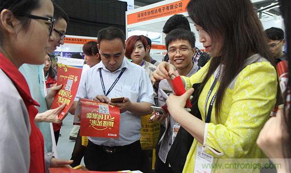 电子商务平台的崛起,也使得营销手段更加花样百出地贴近消费者,再也不是以前坐等顾客上门挑选的被动局面,分销商在展馆里可谓是使出十八般武艺,力图能激起消费者翻牌的欲望。这不,原先四处走动的观众,瞬间被抽中一百块现金红包的欢呼声给吸引了过去,笔者也前往一探究竟,原来是华强电子网的展位上进行的免费认证超级买家抽红包的活动。