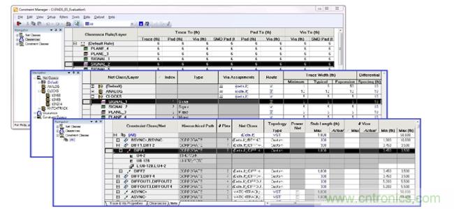 当今的关键高速设计异常复杂,如果没有有效的手段来管理约束规则,则对走线、拓扑和信号延迟等方面的设计、约束和管理将会变得异常困难。为了在第一次迭代中就构建出成功的产品,必须在设计流程的早期设置约束规则,以便设计达到要求的目标。良好的约束规则管理可防止您使用价格高昂或无法采购到的元件,并且最终确保电路板符合性能和制造要求。