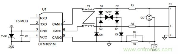 图2.隔离型CAN收发??榧坝τ玫缏?/div>