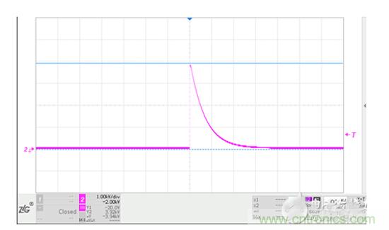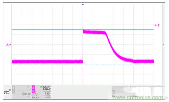 以SP00S12模块为例,它可以满足 IEC/EN61000-4-5 ±4KV 浪涌等级要求,可用于各种信号传输系统,抑制雷击、浪涌、过压等有害信号,对设备信号端口进行保护,非常适合于CAN、 RS-485 等通信领域的浪涌防护。以共模浪涌测试为例,在SP00S12输入端加载4KV、 1.2/50μs 浪涌电压(图4),在输出端测试压降已被降低至17.1V(图5)。