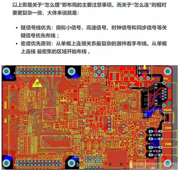 1、遵照“先大后小,先难后易”的布置原则,即重要的单元电路、核心元器件应当优先布局。这个和吃自助餐的道理是一样的:自助餐胃口有限先挑喜欢的吃,PCB空间有限先挑重要的摆。