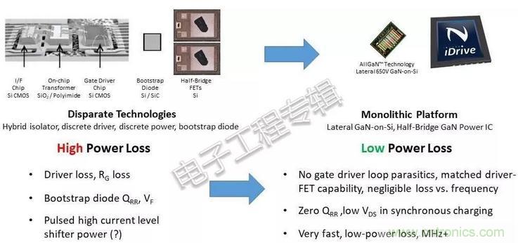 图4:分离驱动器和分离FET与GaN功率芯片性能比较