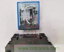 2、还有一个技巧就是在弹簧卡位方向就是线圈供电!这样辨别后,我们开始通根据继电器规格要求的电压开始通电,判断正确就可以听到塔塔的吸合声,正负极接对里面的LED还会亮!