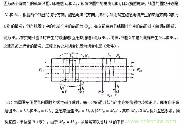 【导读】耦合电感在工程中有着广泛的应用。本文主要介绍耦合电感中的磁耦合现象,互感和耦合因数,耦合电感的同名端和欧和电感的磁通链方程,电压电流关系。还介绍了含有耦合电感电路的分析计算与理想变压器的电路分析。