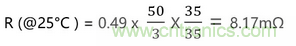 如果铜的尺寸是宽度3mm,厚度35μm和长度50mm时,该铜的电阻值R在25°C是