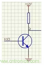 当基极为高电平时,三极管导通,右侧的导线接地为低电平,当基极为低电平时,三极管截止,输出高电平。