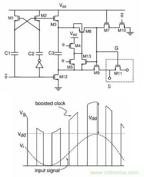 电路用在各种ADC之前的Sample电路,可以让ADC实现rail to rail的input,sample电路的工作电压超过Vdd,极大的减少了了setting time,而且几乎没有reliability的问题。电路里没有任何一个器件是可以被减少或者改变位置的。此电路直接使得ADC的发展往前跃进了一大步,现在已经几乎成为除ΔΣ之外各种ADC的标配,成为历史上最经典的模拟电路之一。当然,电路原理一眼看去也不是很好理解。