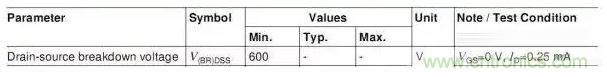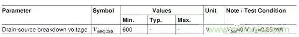 这个参数是有条件的,这个最小值600V是在Tj=25℃的值,也就是只有在Tj=25℃时,MOSFET上电压不超过600V才算是工作在安全状态。