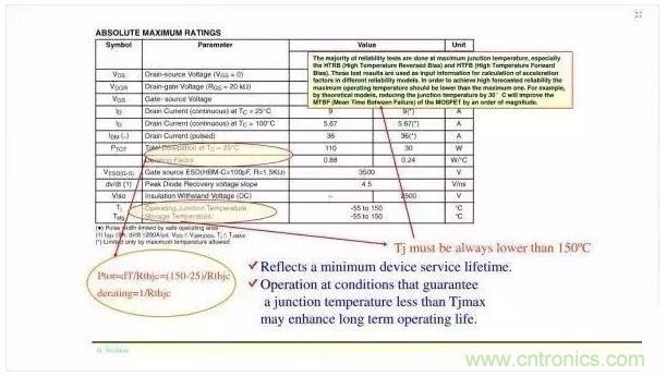 今天看到一篇文档,上面有提到MOSFET的寿命是跟温度有关的。(下图红色框中)