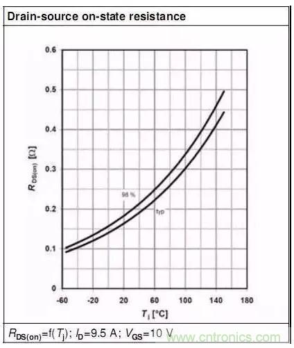 从MOSFET Rds(on)与Tj的图表中可以看到:Tj增加Rds(on)增大,即Rds(on)是正温度系数,MOSFET的这一特性使得MOSFET易于并联使用。