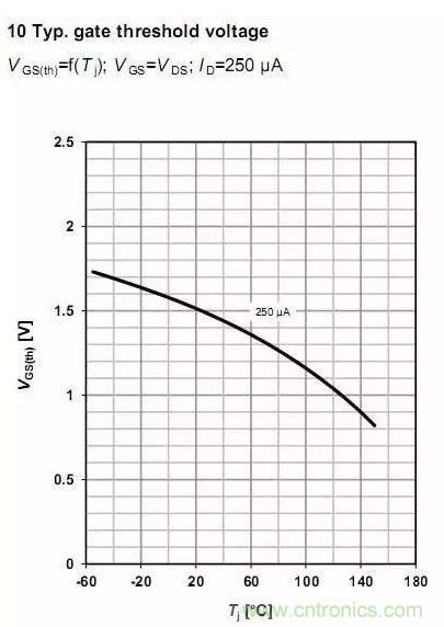 相信这个值大家都熟悉,但是Vgs(th)是负温度系数有多少人知道,你知道吗?(下面两图分别来自BSC010NE2LS和IPP075N15N3 G datasheet.)