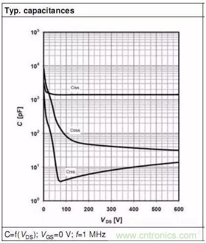 Ciss, Coss, Crss的容值都是随着VDS电压改变而改变的,如下图: