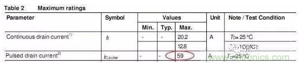 此部分为MOSFET的最大脉冲电流限制,此最大电流对应ID_pulse.