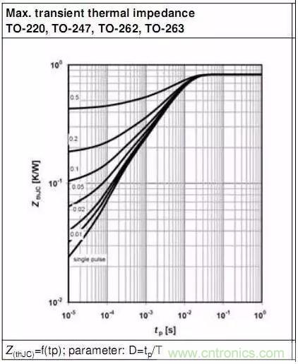 MOSFET要工作在SOA,即要让MOSFET的结温不超过Tj_max(150℃),Tj_max=Tc+PD*ZthJC, ZthJC为瞬态热阻.