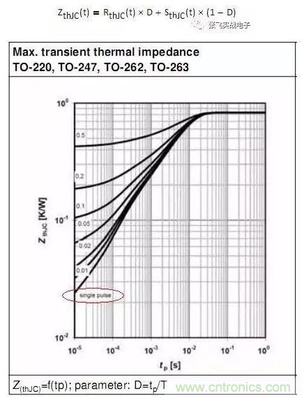 1). 当占空比D不在ZthJC曲线中时:(其中,SthJC(t)是single pulse对应的瞬态热阻)