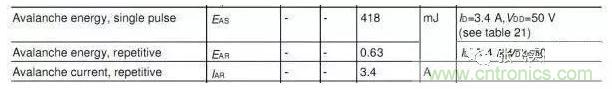 EAS:单次雪崩能量,EAR:重复雪崩能量,IAR:重复雪崩电流