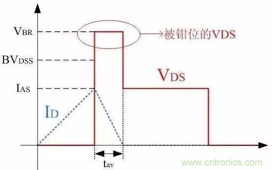 MOSFET雪崩时,波形上一个显著的特点是VDS电压被钳位,即上图中VDS有一个明显的平台