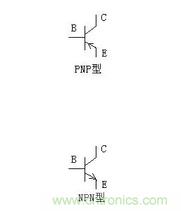 一般,管型是NPN还是PNP应从管壳上标注的型号来辨别。依照部颁标准,三极管型号的第二位(字母),A、C表示PNP管,B、D表示NPN管,例如: