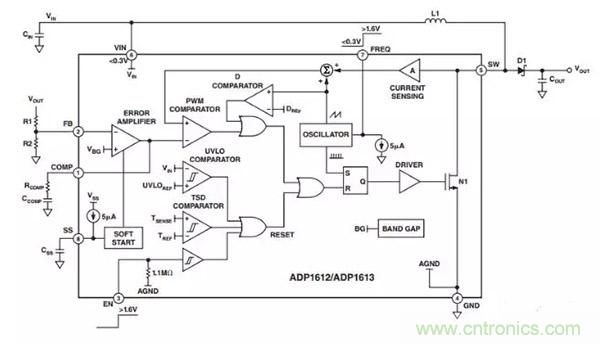 开关稳压器需要通过某种方式改变其输出电压以响应输入和输出电压变化。一种方法是使用PWM控制相关电源开关的输入,从而控制其开关时间(占空比)。工作时,稳压器的滤波输出电压会反馈到PWM控制器来控制占空比。若滤波输出发生变化,则施加到PWM控制器上的反馈会改变占空比以维持恒定的输出电压。
