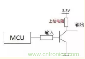 如下图中的R5所示,上拉电阻使三极管基极的输入电平在默认情况下是高电平输入,当CPU有低电平信号输出时,外围电路响应,下拉电阻使晶体管的基极输入在默认情况下拉到低电平,如下图中的R6所示。