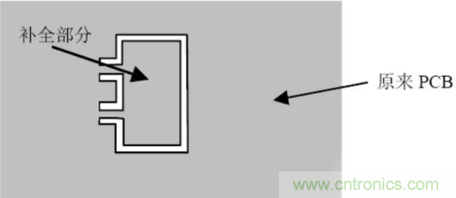 不规则形状且没拼板的PCB 应加工艺边。若PCB 上有开孔大于等于5mm×5mm的地方,在设计时要先将孔补全,以避免焊接时造成漫锡和板变形,补全部分和原有的PCB 部分要以单边几点连接,在波峰焊后将之去掉(见图3.2)