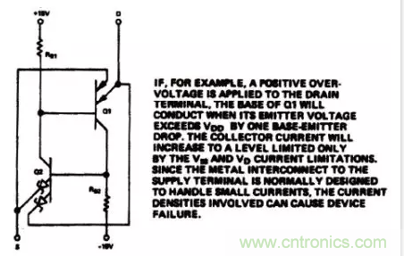 图3:CMOS开关中的寄生晶体管益沦应