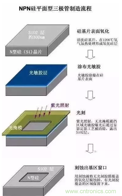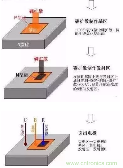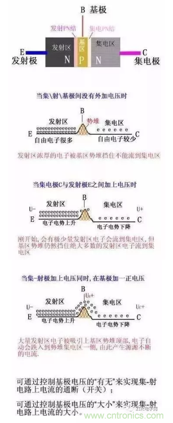 【导读】这里讲解三极管的发明史、核心结构、结构示意图、制造流程、结构切面图、工艺结构特点、电路符号、电流控制原理示意图、基本电路等,让大家全面了解三极管。