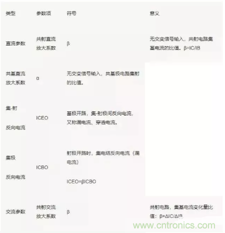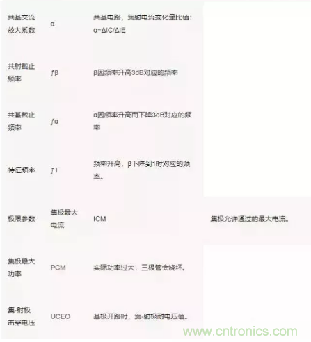 三极管性能参数较多,有直流、交流和极限参数之分: