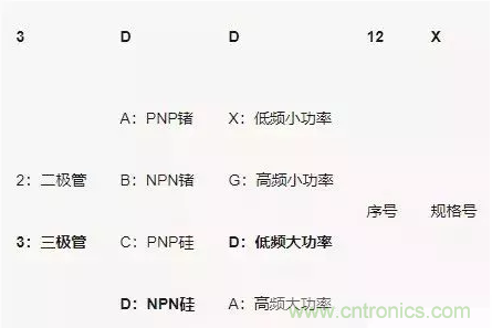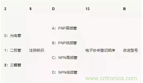 不同的国家/地区对三极管型号命名方式不同。还有很多厂家使用自己的命名方式。
