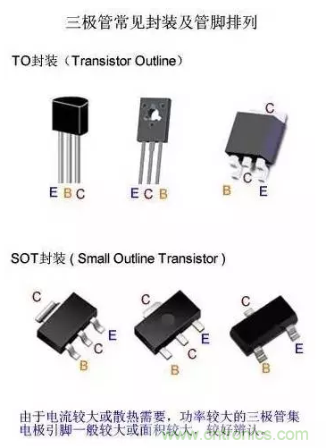 当前,塑料封装是三极管的主流封装形式,其中“TO”和“SOT”形式封装最为常见。