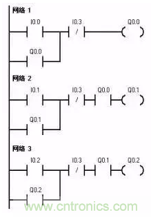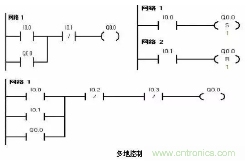 多输出自锁控制即多个负载自锁输出,有多种编程方法,可用置位、复位指令