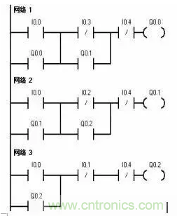 1. 单向顺序启动控制电路是按照生产工艺预先规定的顺序,在各个输入信号的作用下,生产过程中的各个执行机构自动有序动作。只有Q0.0启动后,Q0.1方可启动,Q0.2必须在Q0.1启动完成后才可以启动。