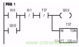 3.延时启??刂频缏犯玫缏芬笥惺淙胄藕藕螅R欢问奔涫涑鲂藕挪盼狾N;而输入信号0FF后,输出信号延时一段时间才OFF。T37延时3 s作为Q0.0的启动条件,T38延时5 s作为Q0.0的关断条件。