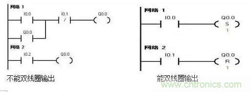 (2)梯形图中同一编号的“继电器线圈”只能出现一次,通常不能出现,但是它的触点可以无限次地重复使用。