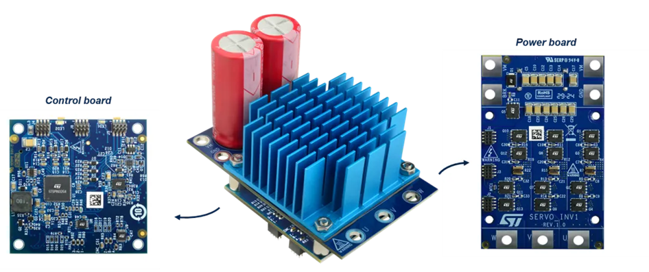 意法半导体 的 STSPIN32G4 将高性能STM32 microcontroller、三相半桥栅极驱动器和灵活电源管理电路集成于单芯片。微控制器负责高级电机控制算法,驱动器则全权控制功率级。新型 EVLSERVO1  参考设计(图1) 基于 STSPIN32G4,专为伺服驱动应用开发。