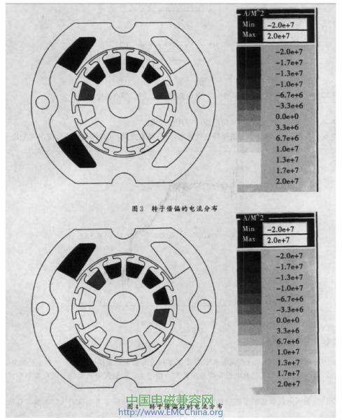 图3及图4分别表示了转子在借偏前后的电流分布: