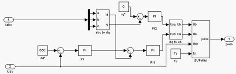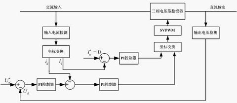 其中,空间电压矢量控制通过合理地选择、安排开关状态的转换顺序和通断持续时间,改变多个脉冲宽度调制电压的波形宽度及其组合,达到较好的控制。相对SPWM控制,具有电压利用率高、谐波含量小、大大改善了系统的静态和动态性能,具有结构简单、容易实现、控制精度高等特点。本文采用空间矢量控制的控制策略,并对整流电路采用电压外环PI和电流内环PI控制相结合的方法,建立三相电压型PWM矢量控制方案的仿真模型,并对其进行分析研究。
