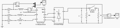 主电路仿真模型如图2所示。它主要由输入电源???、三相整流器??楹鸵恍┑缪?、电流测量单元组成。
